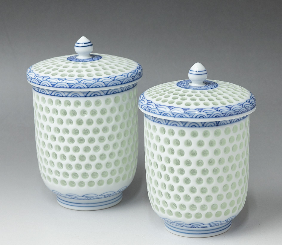 Suishobori Seigaiha lidded yunomi
