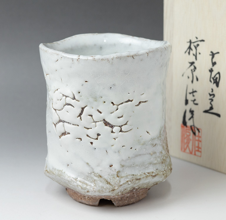 White Hagi Kairagi yunomi #62 by Mukuhara Kashun