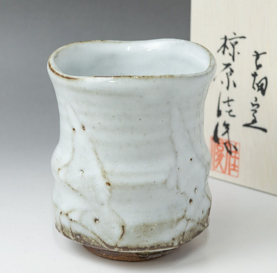 White Hagi yunomi #63 by Mukuhara Kashun