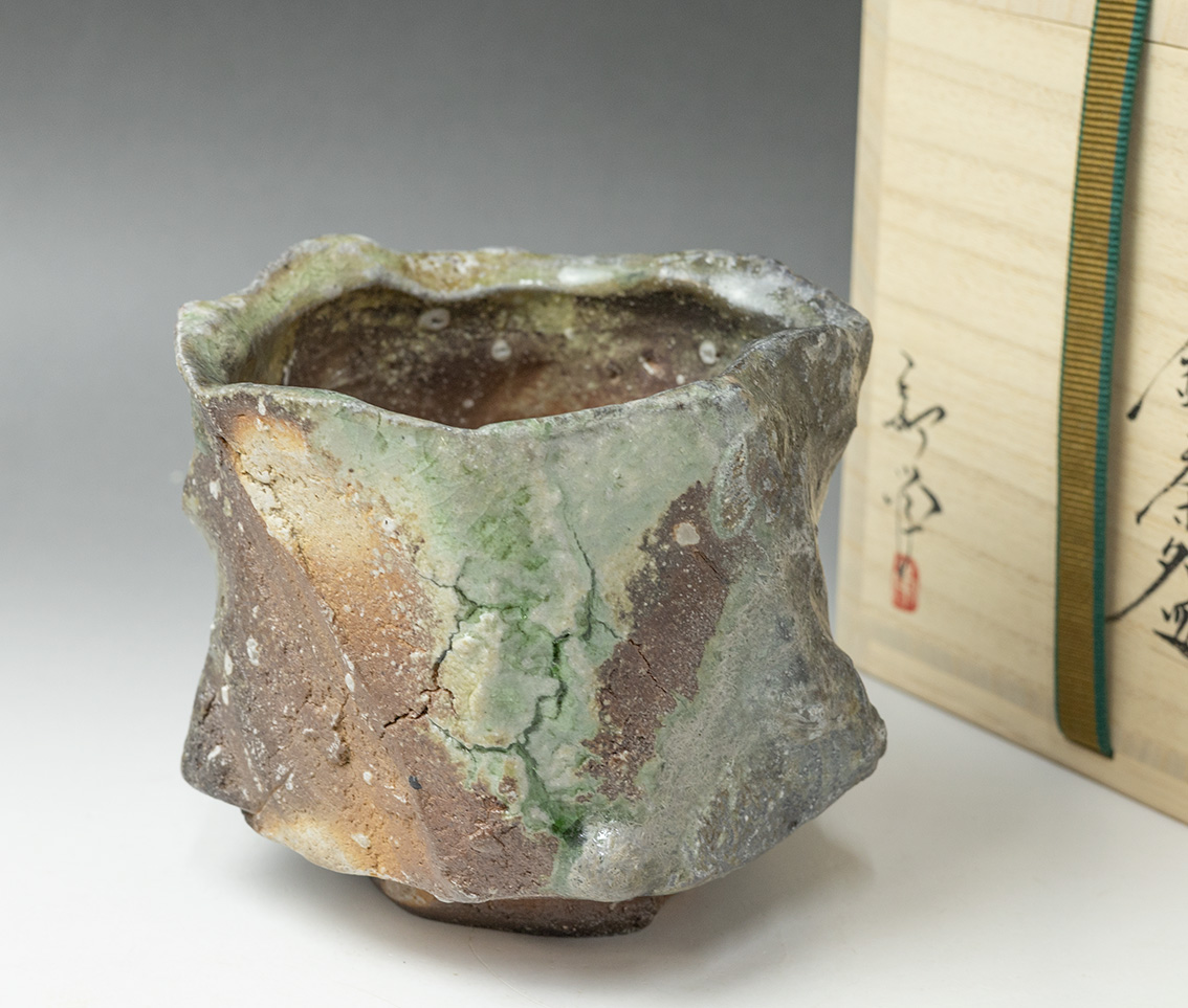 Igayaki shinogi (ridged) matcha bowl by Atarashi Manabu
