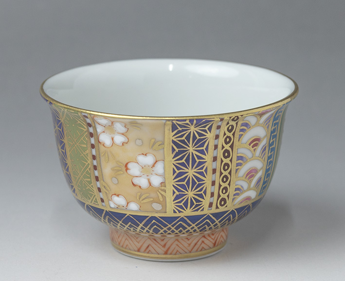 Handpainted Kyosatsuma style kinsai sencha cup by Kizawa #10 - Traditional pattern