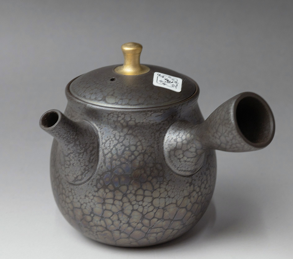 Tenmoku style kyusu with gold knob by Shoryu #11