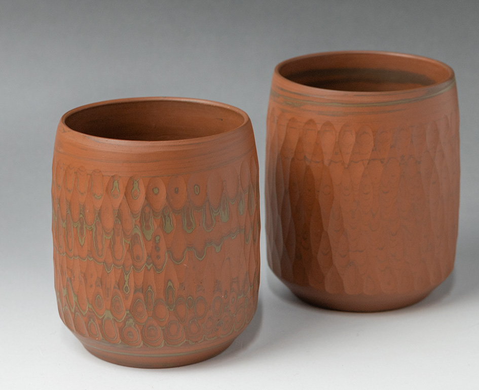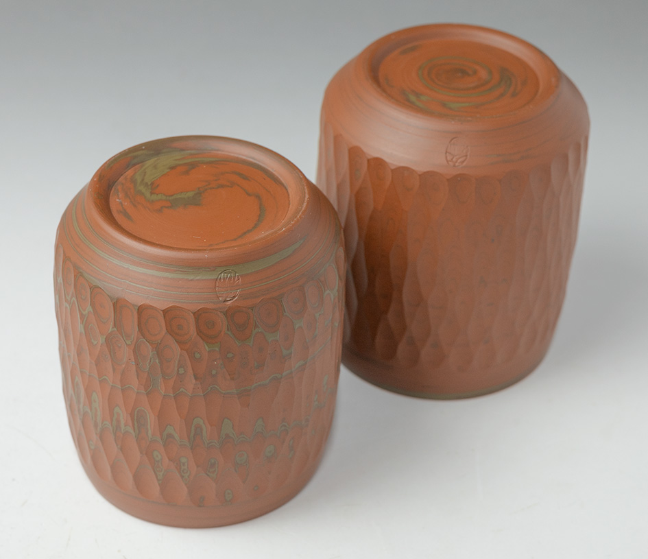Red Nerikomi yunomi by Yusen